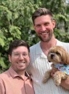 Brendan works from home in dental insurance and loves museums, growing giant flowers, and trying new recipes from America’s Test Kitchen. He’s energetic, kind, and always finds the fun in everyday moments. Robert is an engineering manager who enjoys hiking, baking sourdough, visiting zoos, and creating the best Christmas light displays. He’s calm, thoughtful, and has a quiet strength that shows in how he supports those around him.