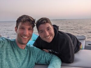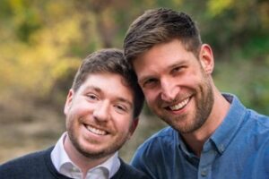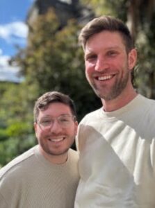 Brendan works from home in dental insurance and loves museums, growing giant flowers, and trying new recipes from America’s Test Kitchen. He’s energetic, kind, and always finds the fun in everyday moments. Robert is an engineering manager who enjoys hiking, baking sourdough, visiting zoos, and creating the best Christmas light displays. He’s calm, thoughtful, and has a quiet strength that shows in how he supports those around him.