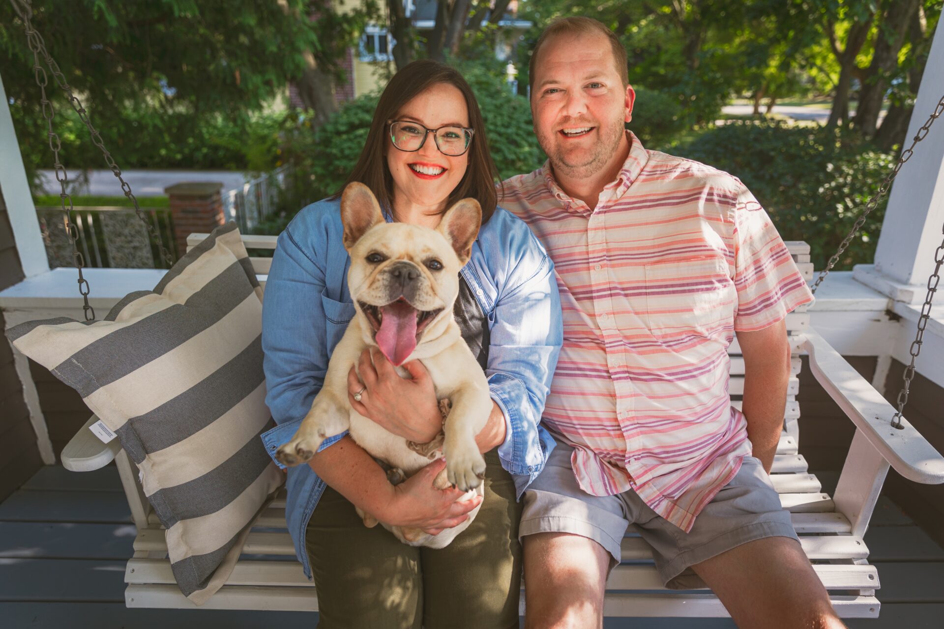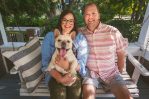 Together, we love taking our french bulldog (named Kevin Bacon) for walks, thrift store adventures, and home renovation projects. With our future family in mind, we recently moved to a home in a diverse neighborhood with a large fenced-in backyard, highly rated schools, and a playground nearby!